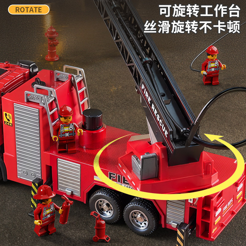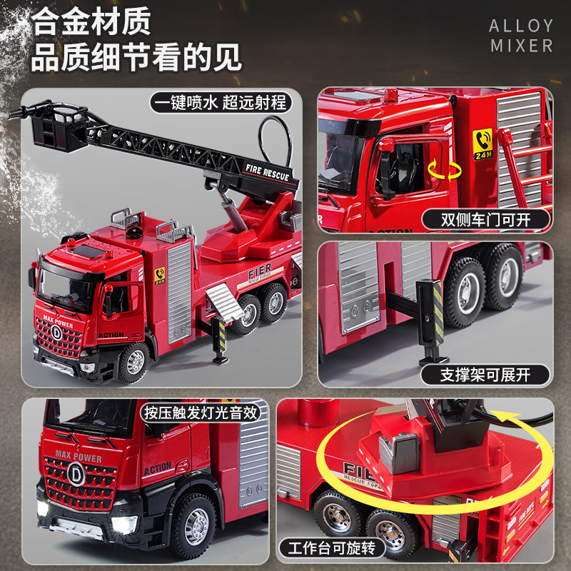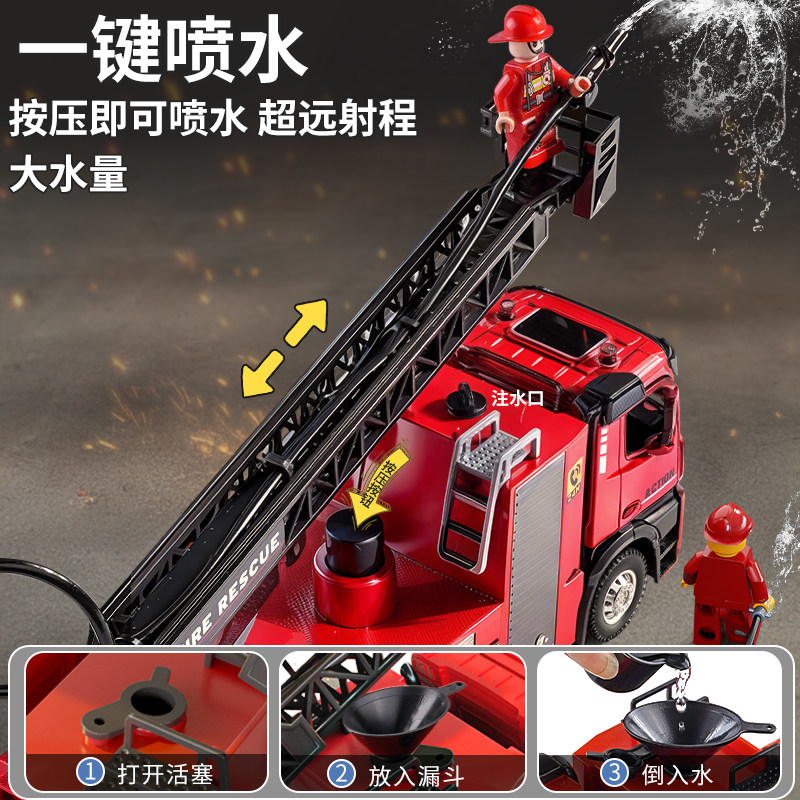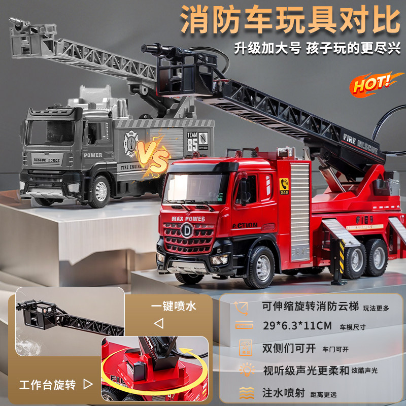 可喷水大号合金消防车洒水工程车儿童仿真云梯救援车模型男孩