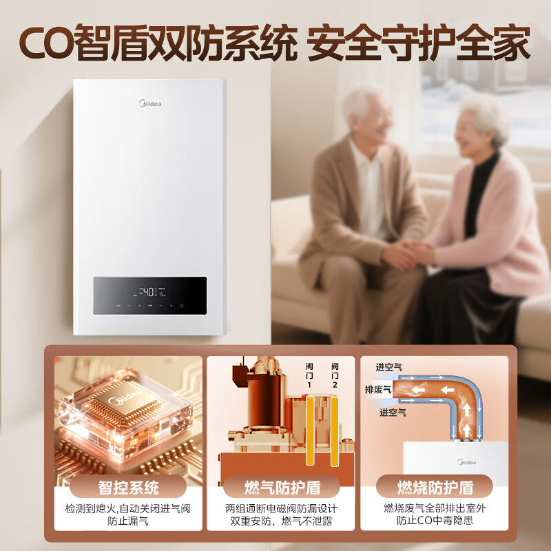 【大水量】美的燃气壁挂炉天然气家用采暖锅炉地暖热水器供暖两用