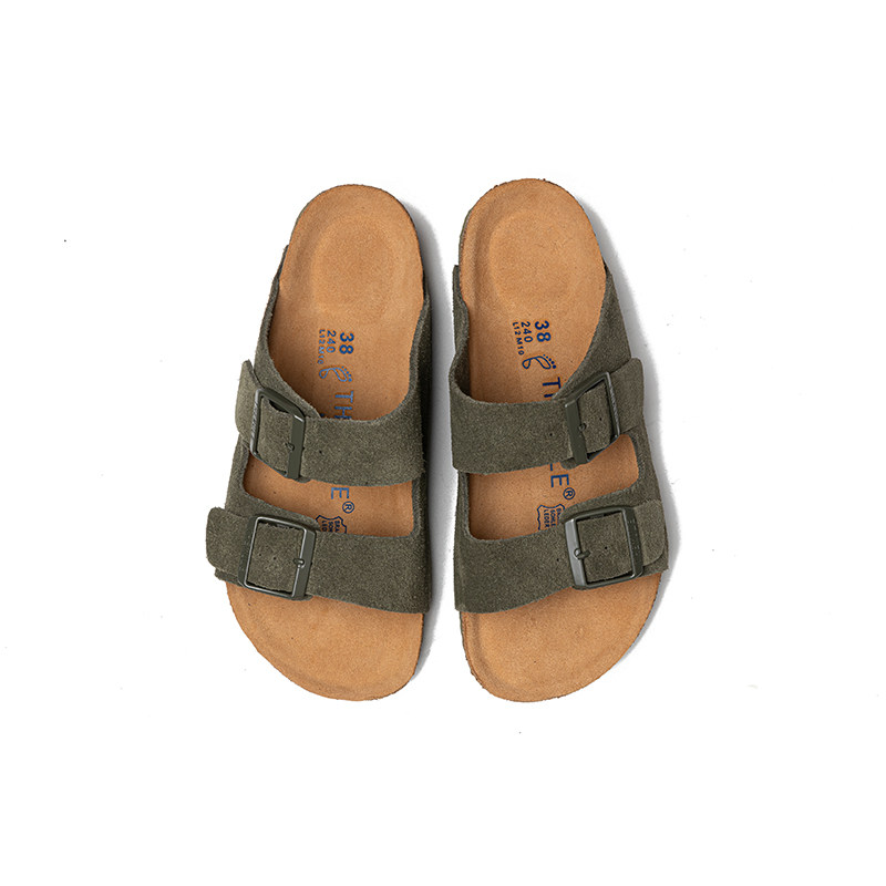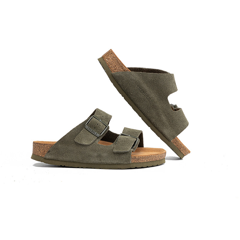 THEMULE勃肯鞋一字拖男外穿真皮软木博肯凉鞋女夏平底懒人一脚蹬