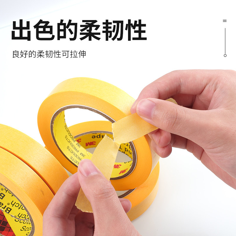 3M美纹纸244胶带无痕耐高温遮蔽汽车喷漆模型分色和纸墙面书写