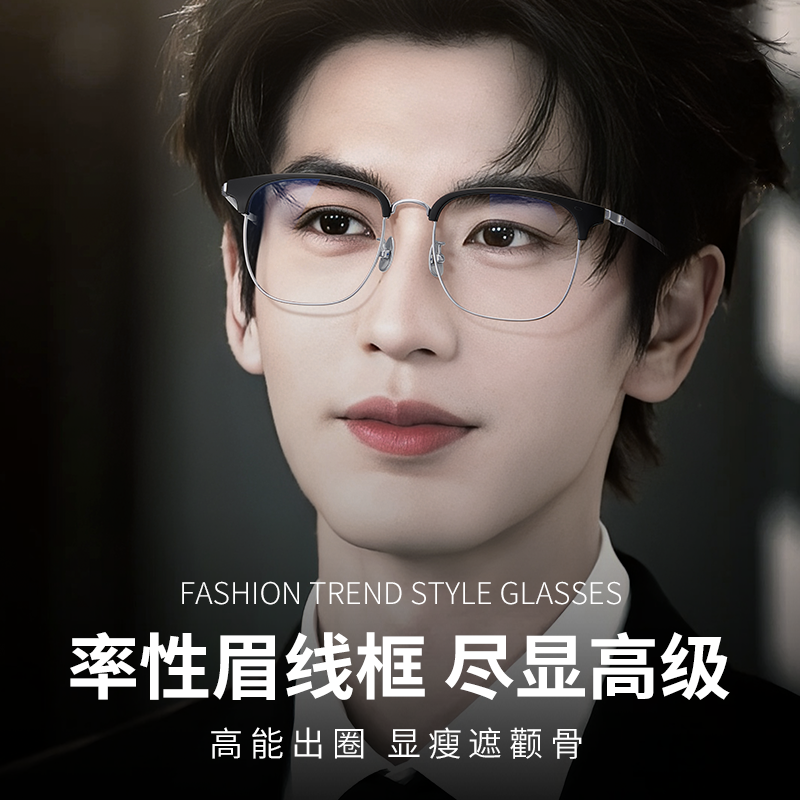 蔡司泽锐防蓝光plus铂金膜超轻钛斯文半框近视眼镜男款可配度数M