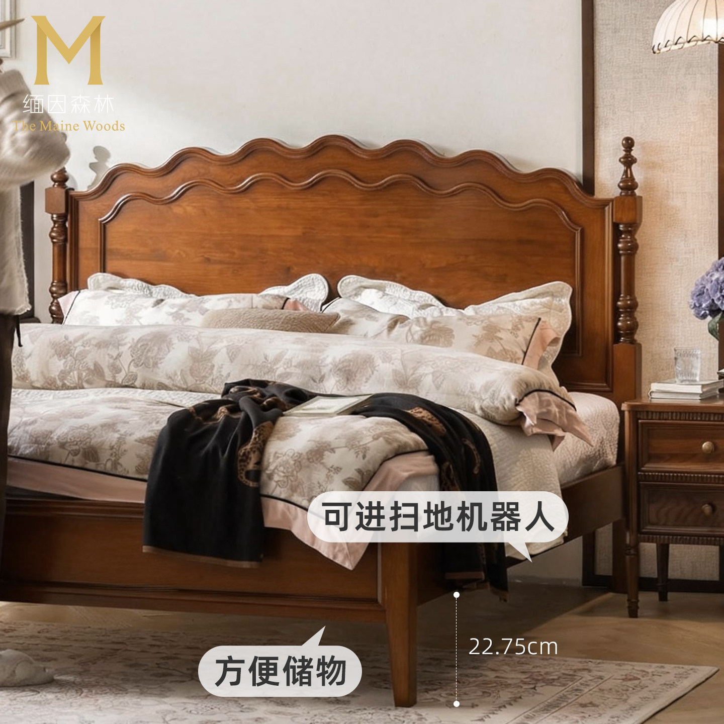 中古纯实木床主卧复古床双人床1.8米卧室家具简约美式