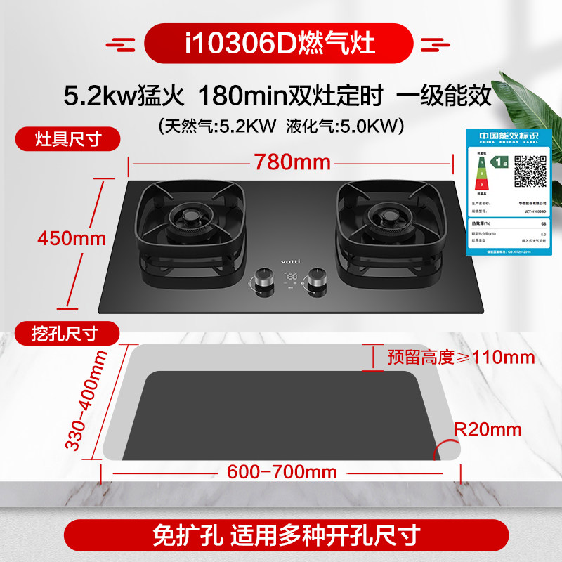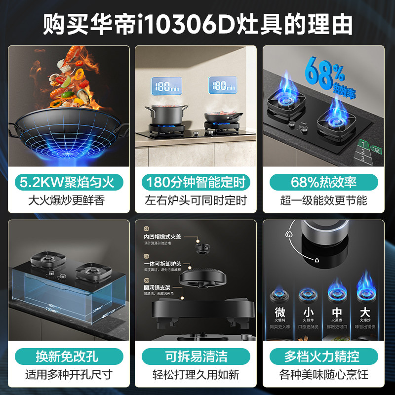 华帝i10306D定时燃气灶双灶嵌入式5.2KW家用天然气煤气灶具旗舰店