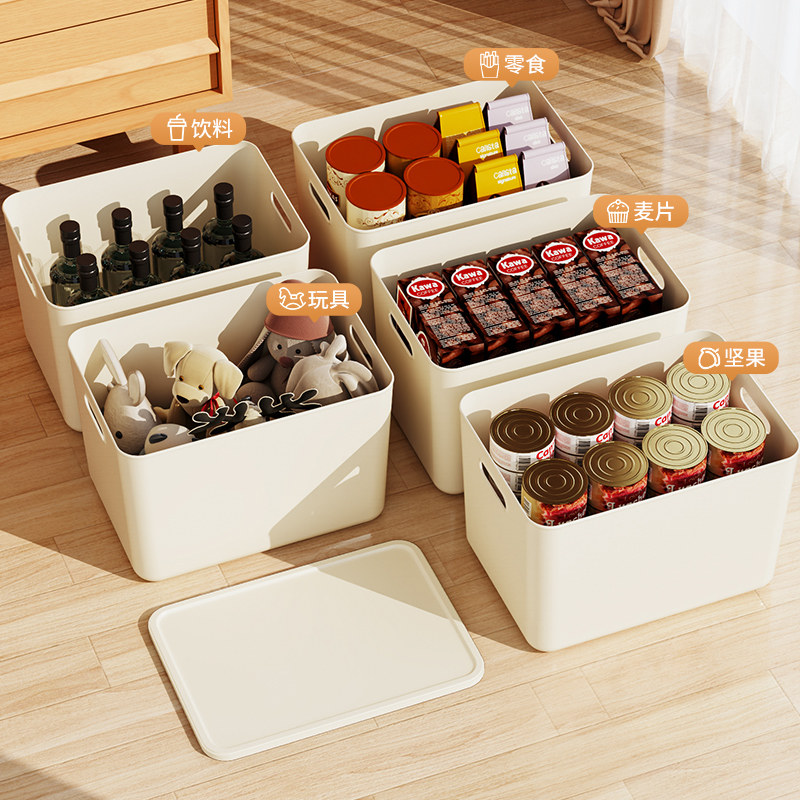 桌面收纳盒长方形零食化妆品杂物整理盒带盖家用储物置物收纳箱子