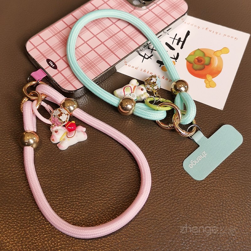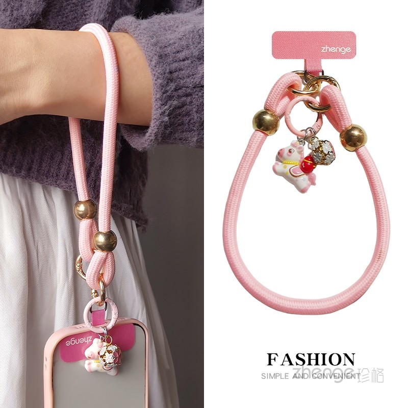 高品质手腕编织手机挂绳小马吊坠饰品短款结实耐用户外登山便携旅游行防丢摔手提链电话套壳挂件时尚通用新款