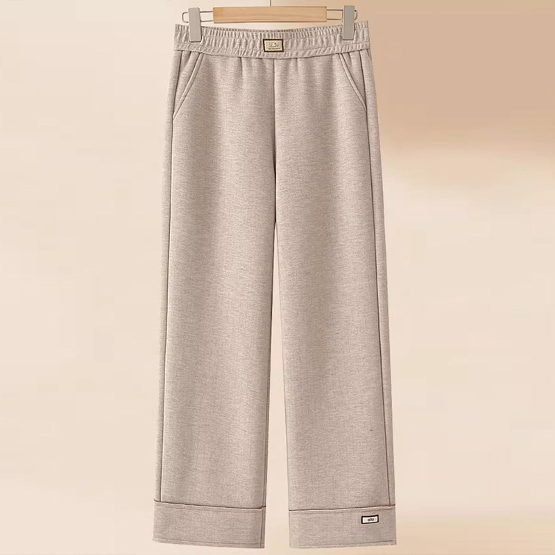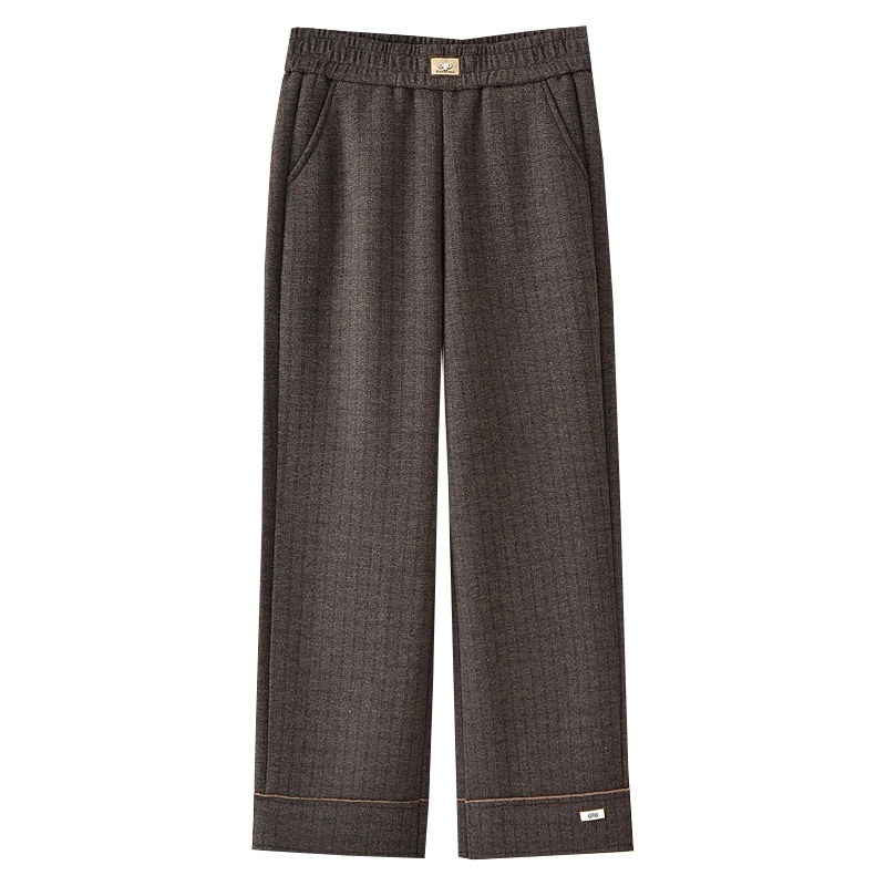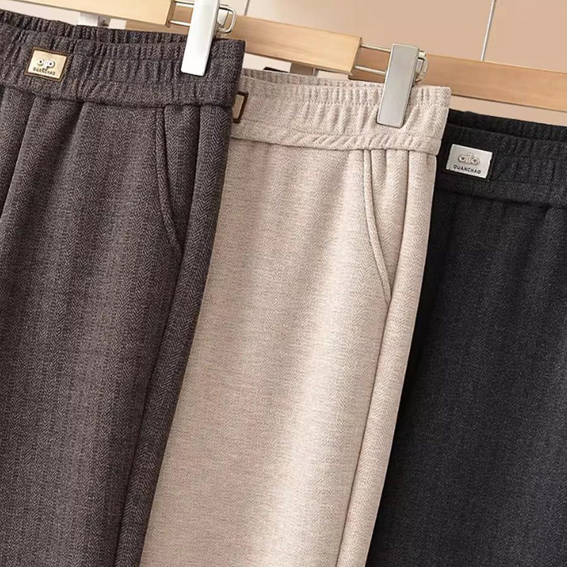 妈妈冬季加绒加厚裤子保暖直筒裤中老年人女裤高腰奶奶垂感阔腿裤