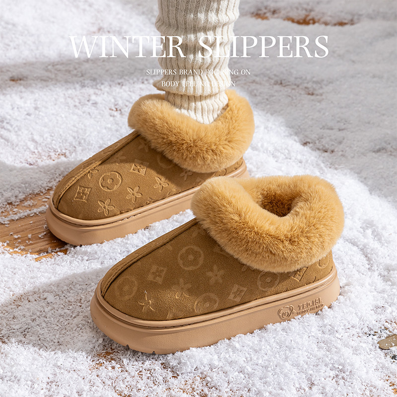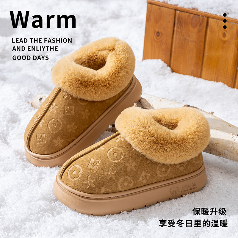 红豆踩屎感棉拖鞋女士秋冬季室内家居2025新款毛绒保暖情侣棉拖男