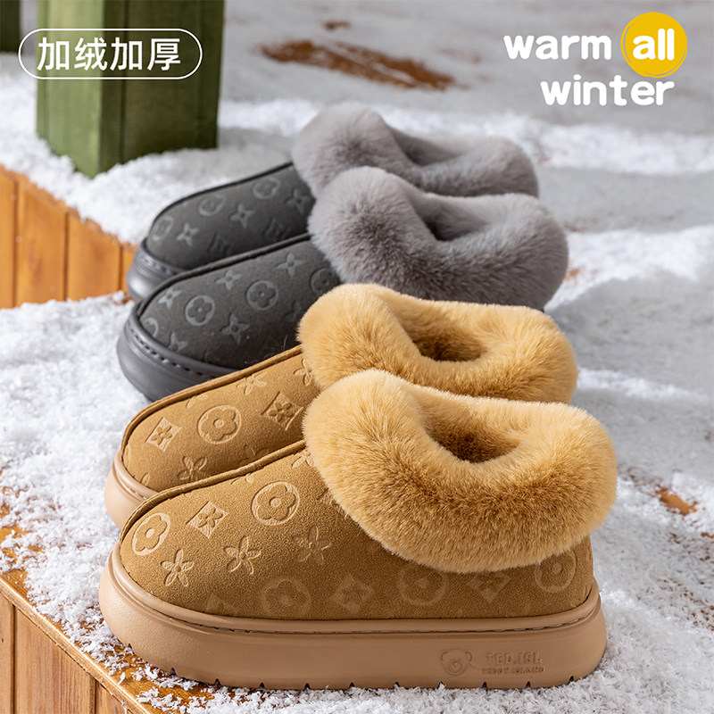 2026新款翻半包跟棉拖加绒保暖情侣外穿毛毛绒厚底防滑居家棉拖鞋