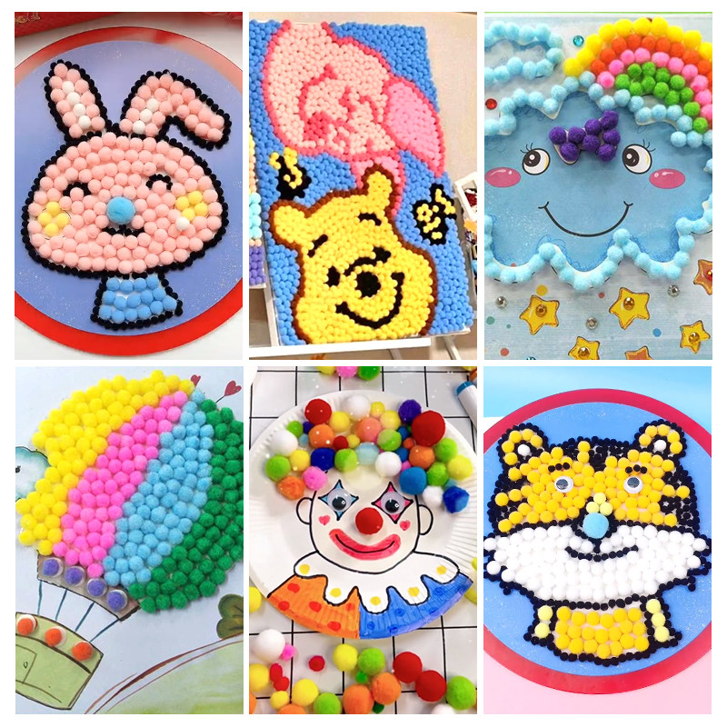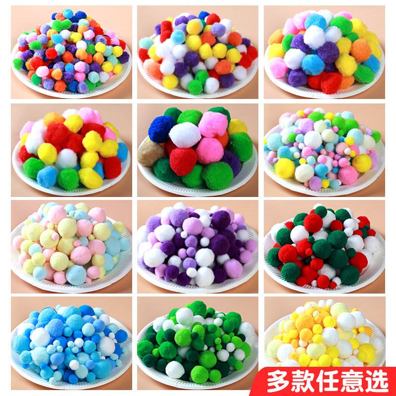 高弹彩色毛球1cm儿童幼儿园diy手工材料美术创意饰品配件毛绒球圣诞色马卡龙色