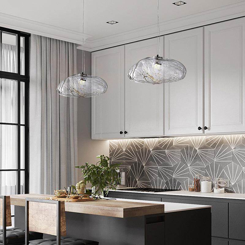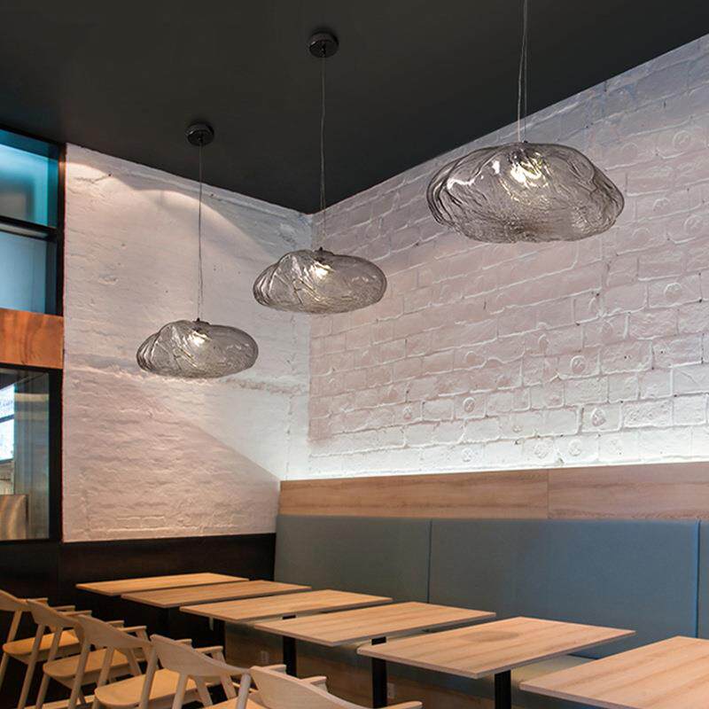 复式楼梯吊灯餐厅loft公寓别墅挑空客厅玻璃云朵灯酒店长线吊灯