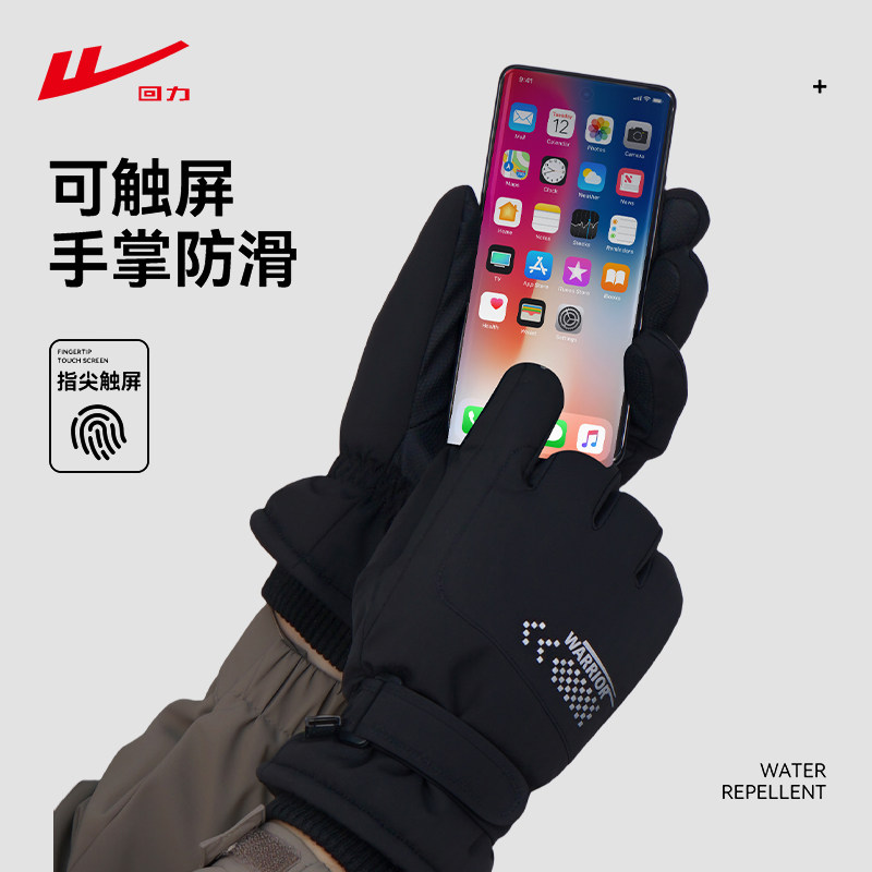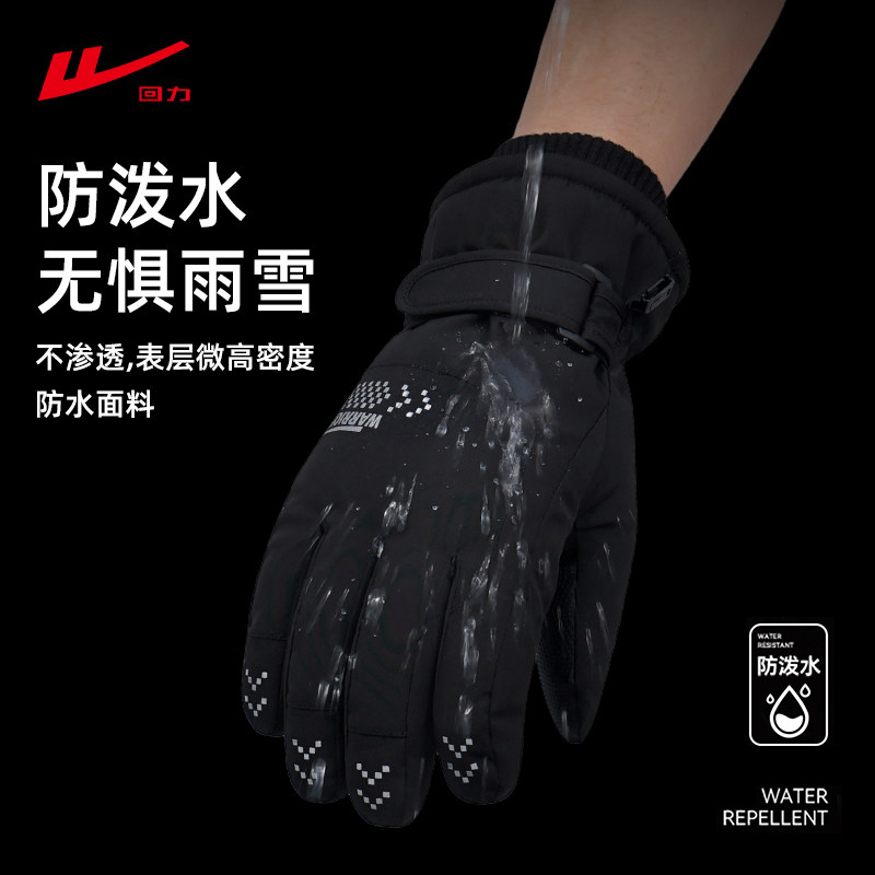 回力滑雪手套冬季男女士加绒加厚骑行电动车防水防滑触屏开车保暖