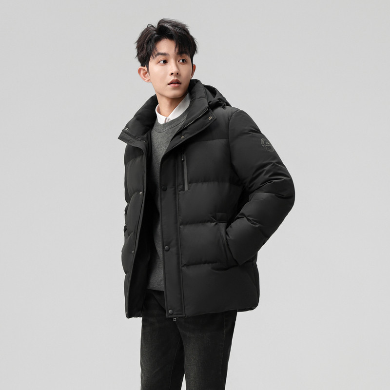骆驼男装秋冬黑色加厚保暖鸭绒短款面包服男女同款防水羽绒服外套