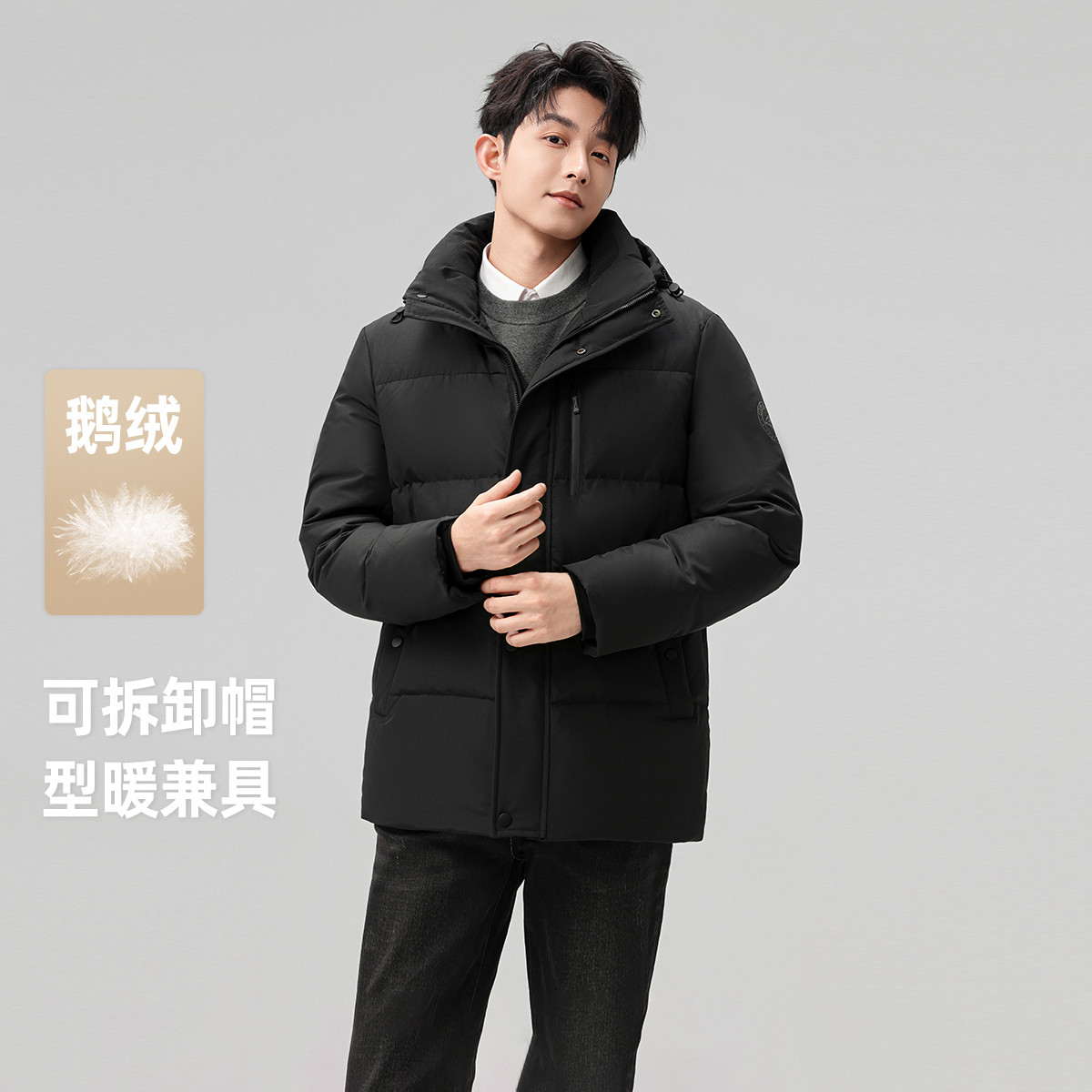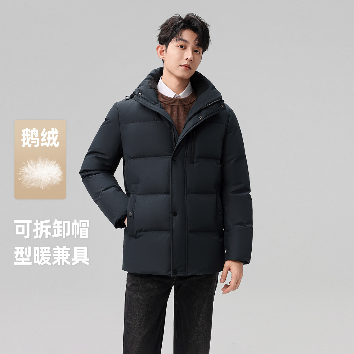 雪中飞2025冬新款重磅鹅绒羽绒服男商务休闲百搭保暖夹克外套