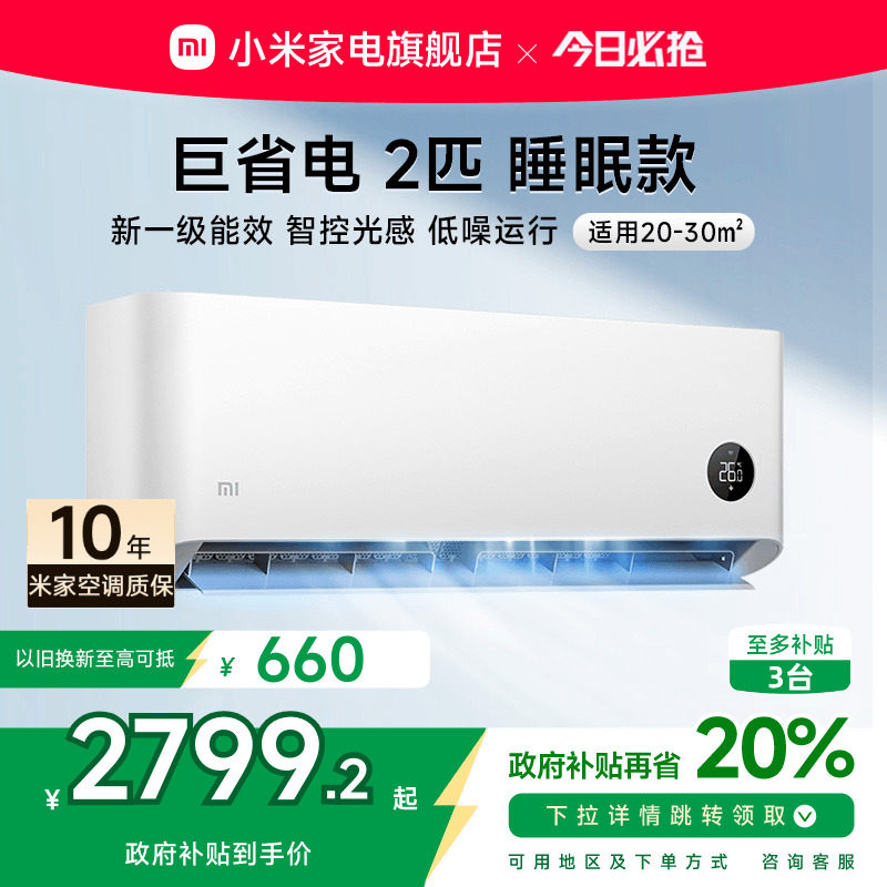 小米米家空调2匹新一级能效睡眠款变频智能控制家用速热速冷官方