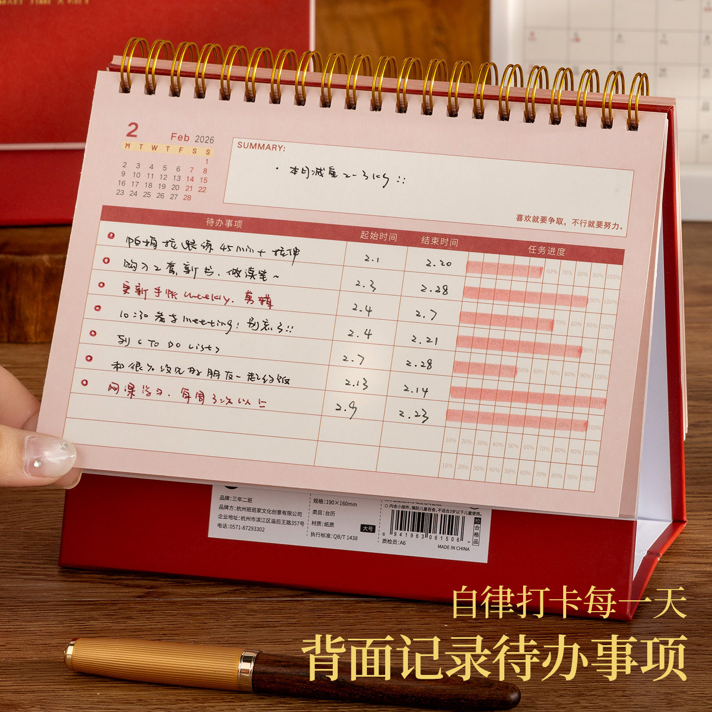 三年二班 2026年新款台历简约日历桌面摆件学生用创意计划月历办公公司定制logo记事本马年商务台历本备忘录