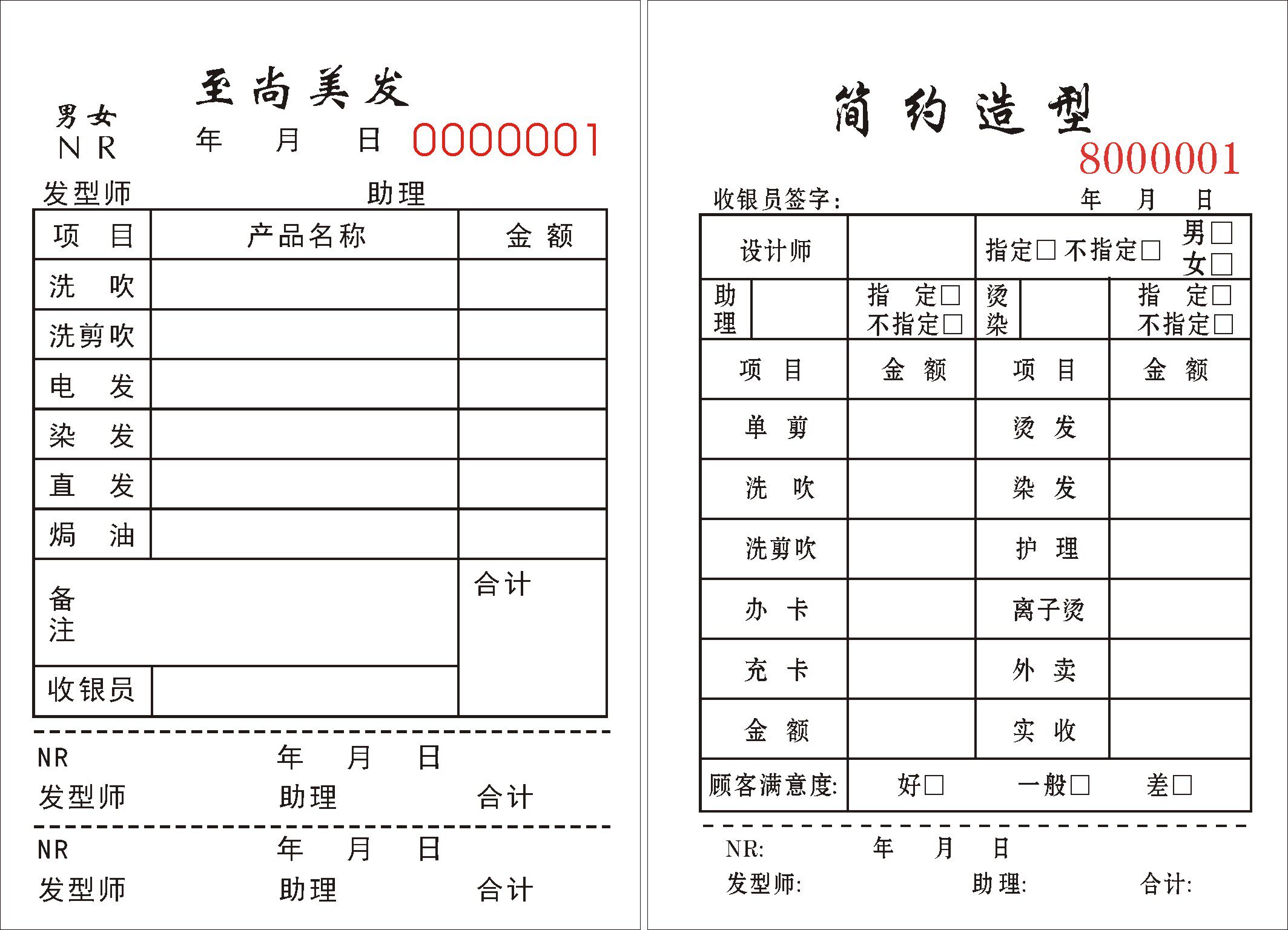 定做制美发流水收银消费单理发店现货联美容美甲通用开单票据印刷