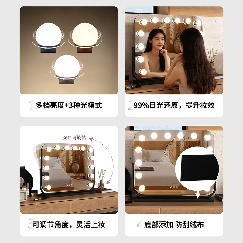 智能led桌面2025新款梳妆台一体梳妆镜子化妆镜补光带灯台式热卖