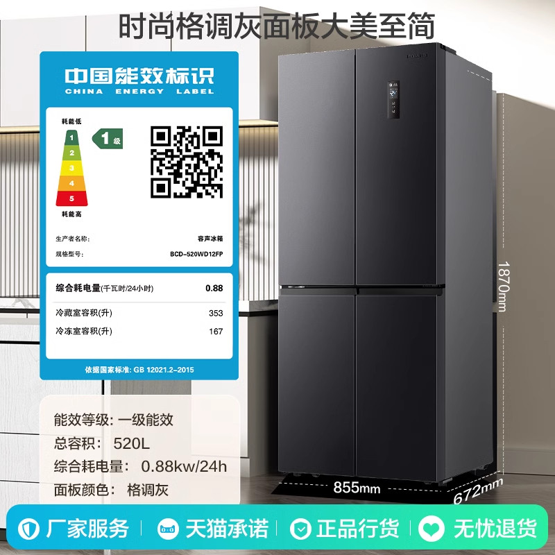 容声冰箱520升十字双对开四门一级能效家用无霜变频节能官方正品