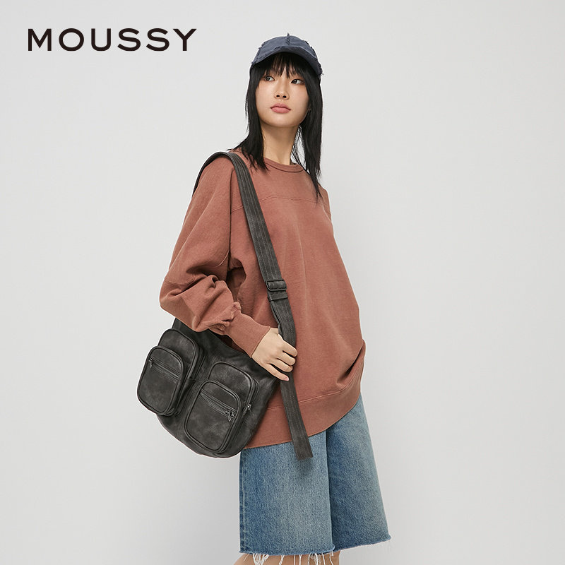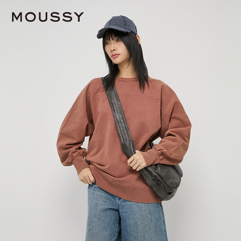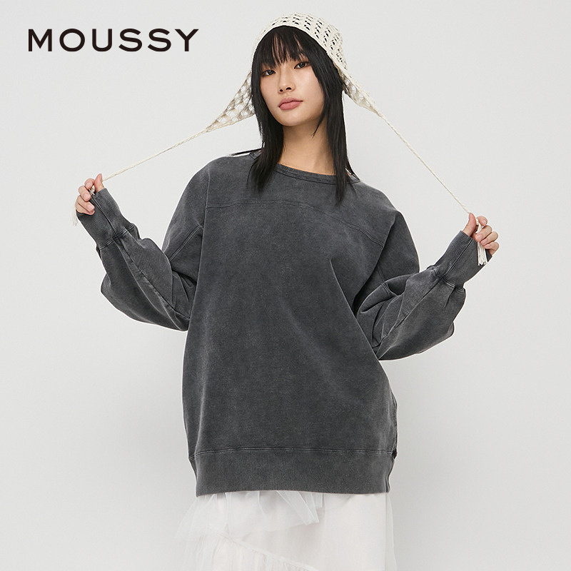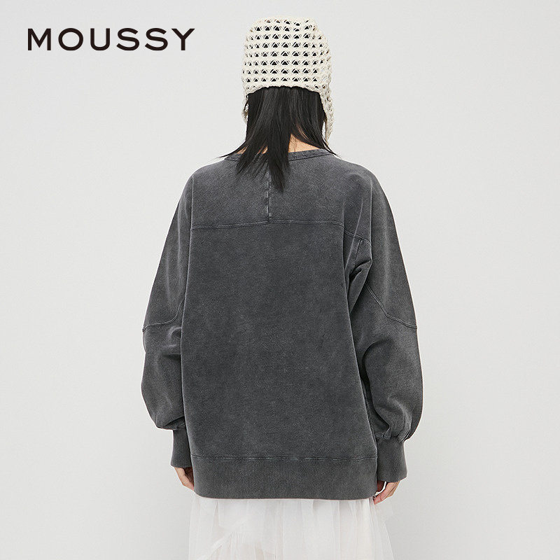 moussy 秋季新品简约男友风做旧圆领宽松卫衣女028HAA80-2081