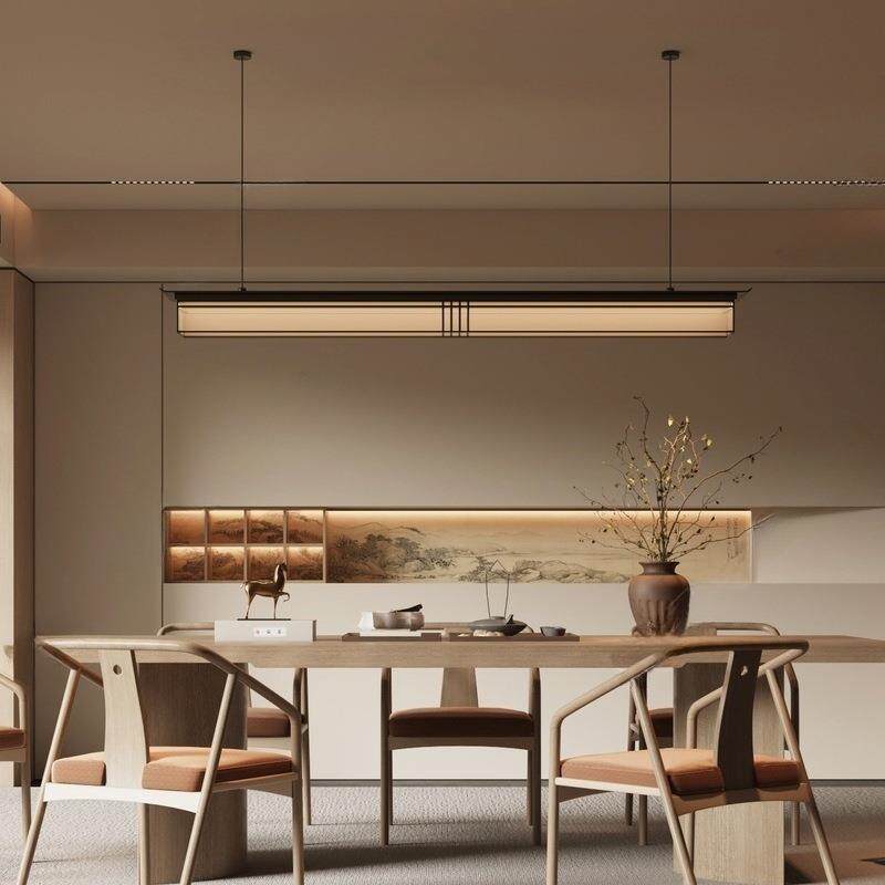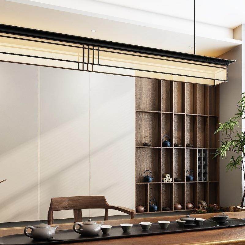 2024年新款设计师灯具中式餐厅茶室一字吊灯吧台书房前台灯饰中山