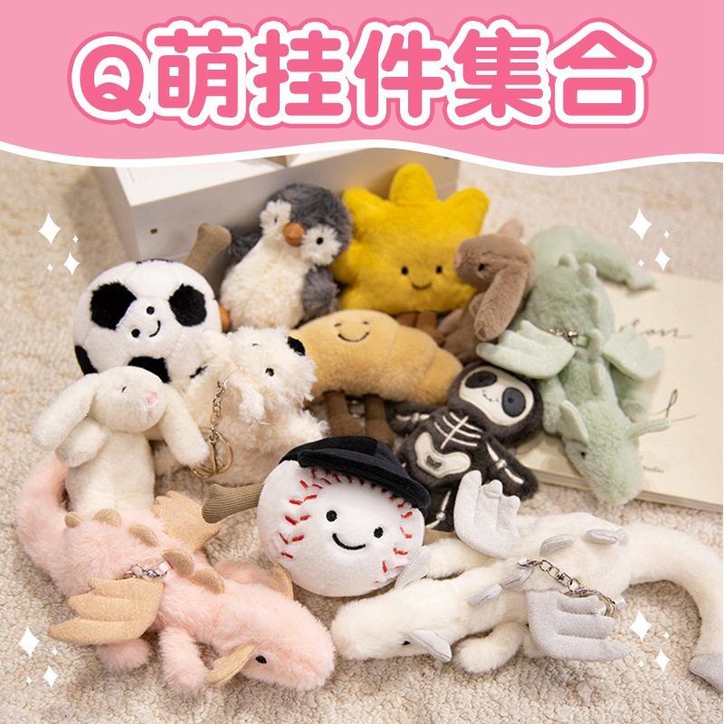 jelly趣味平替挂件牛角包球类钥匙扣包包装饰毛绒玩具礼物批发