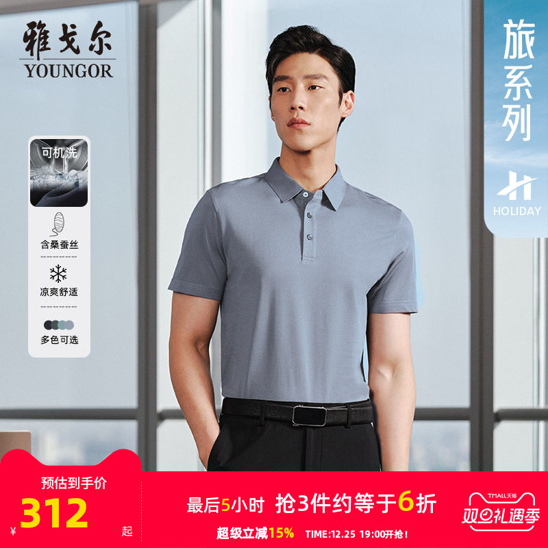 【可机洗桑蚕丝+羊毛】雅戈尔夏季男士短袖POLO衫商务休闲翻领T恤