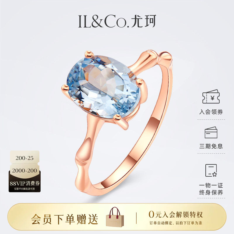 ILCO尤珂「竹节序曲」18k金海蓝宝戒指宝石复古天然彩宝镶嵌女戒