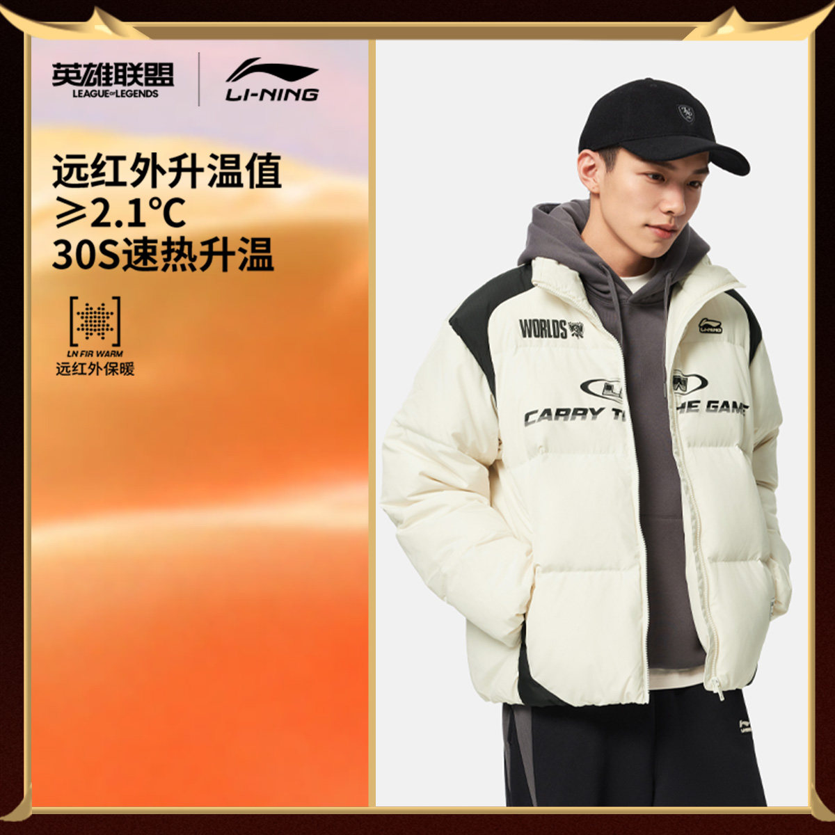 李宁 x LPL联名系列短款短羽绒服男士官方新款宽松冬季鸭绒运动服
