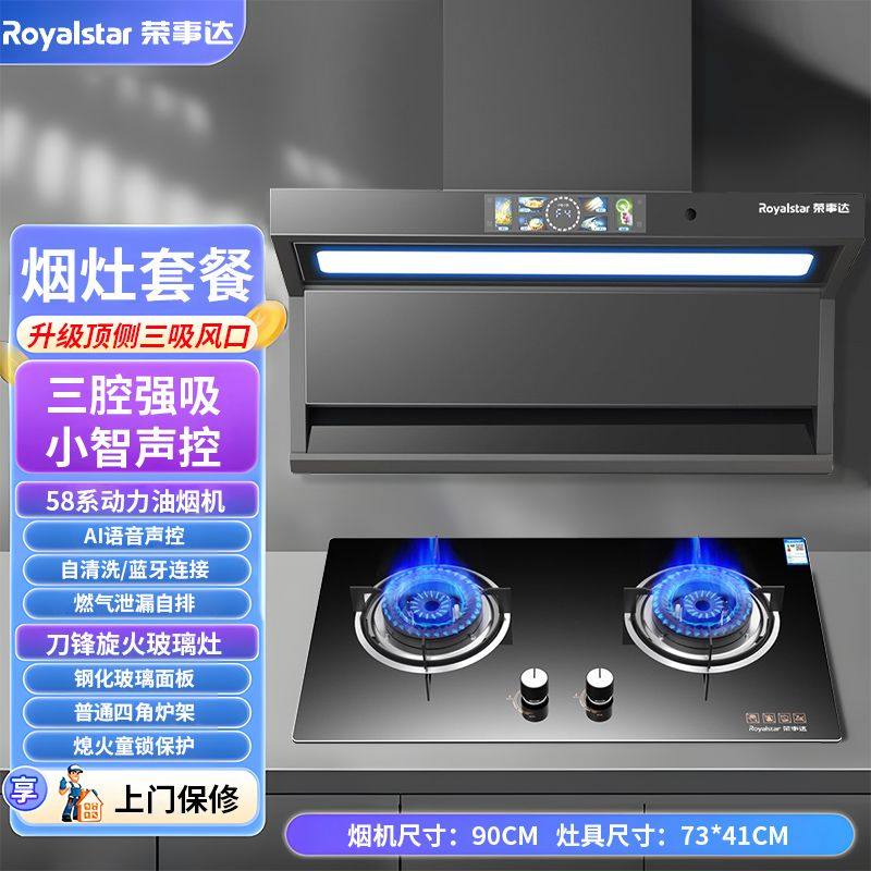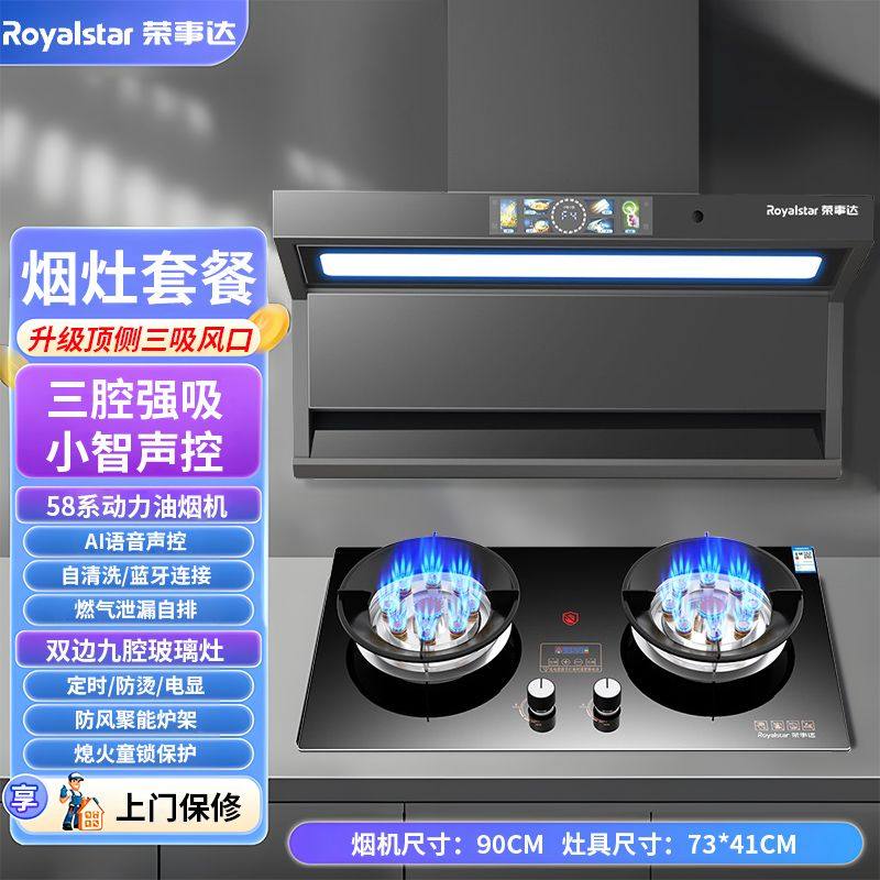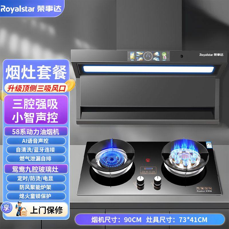 荣事达抽油烟机厨房家用顶侧三吸大吸力猛火燃气灶烟灶两件套套装