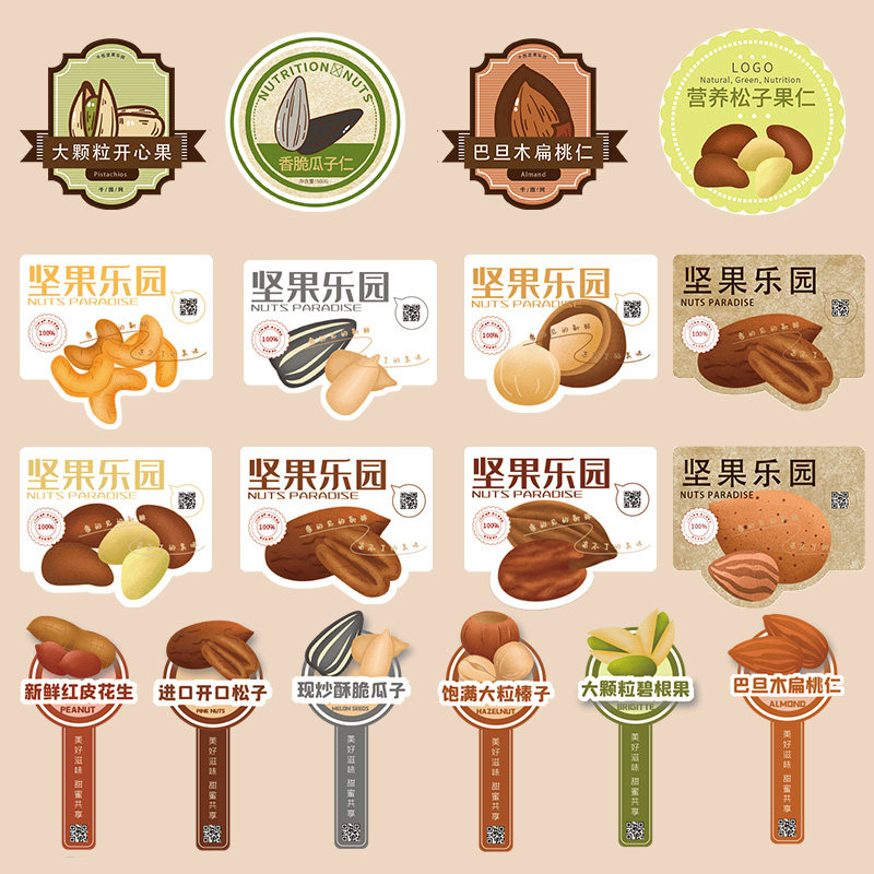 定制松子罐装标签坚果腰果开口腰果巴旦木夏威夷果松子瓶身贴纸山核桃精品干果纸皮核桃银杏果袋贴不干胶订做