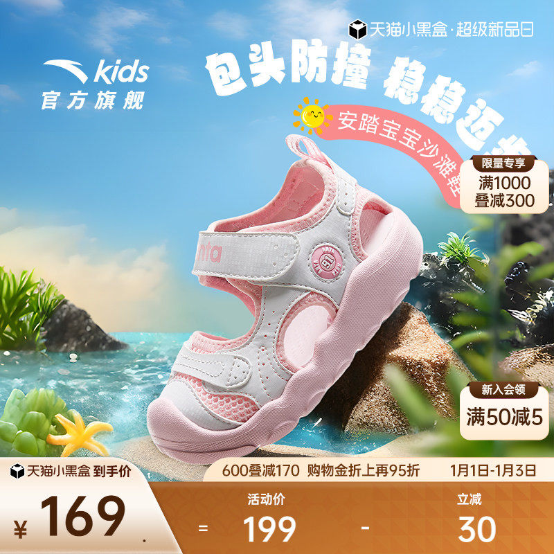 安踏儿童女婴童沙滩鞋2025夏季新款防滑耐磨包头凉鞋潮
