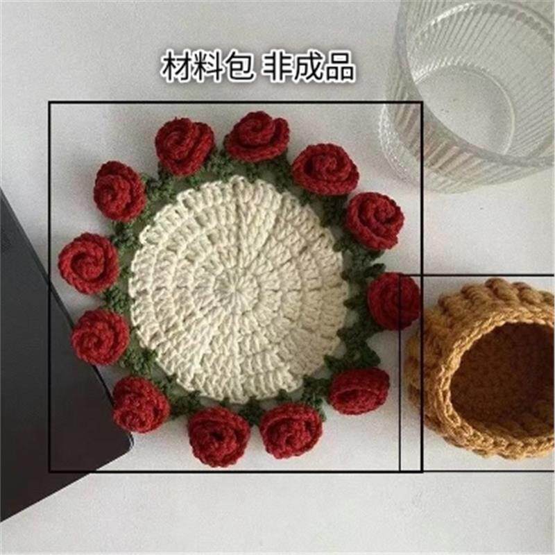 手工编织毛线diy玫瑰花束迷你毯子材料包钩针创意礼物杯垫非成品