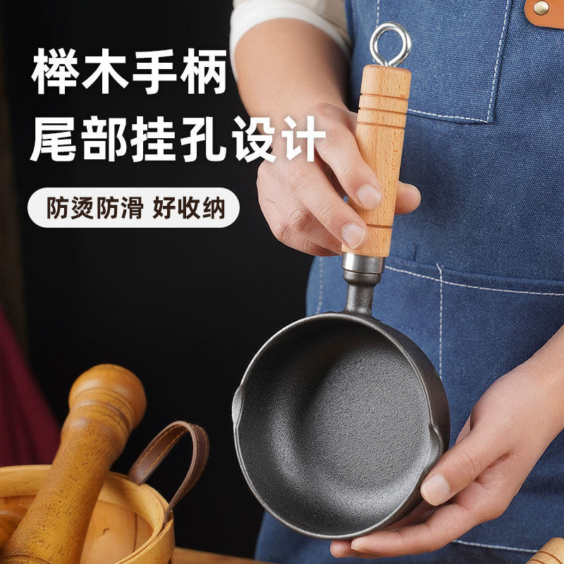 新款加深铸铁泼油锅迷你小锅淋油炝油热奶煎蛋锅不沾家用平底煎锅