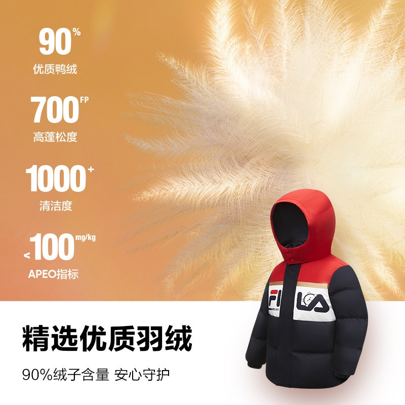 FILA斐乐儿童羽绒服2025年冬季新款男小童休闲加厚保暖外套钻石绒