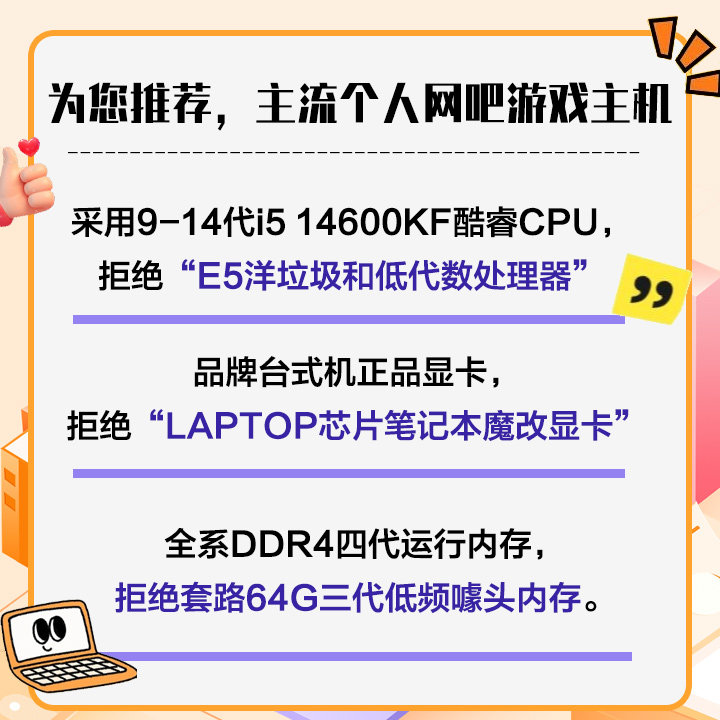 网吧电脑主机9-14代i5 14600KF/5060Ti/4060游戏二手组装台式机