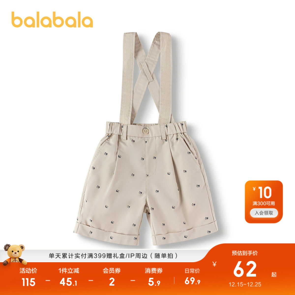 巴拉巴拉童装男童背带裤儿童裤子凉感抗菌夏季小童满印中裤时尚潮