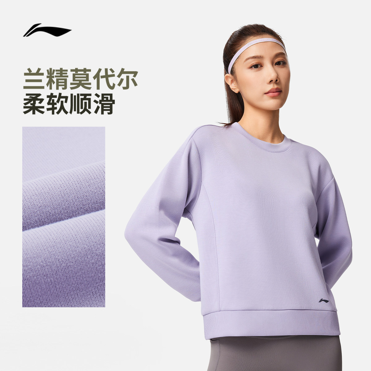 李宁卫衣女士春季2026新款健身套头衫长袖圆领女装上衣针织运动服