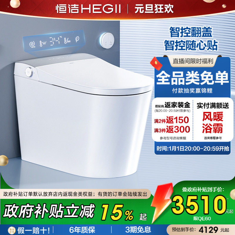 恒洁智能马桶全自动感应一体式座坐便器家用小户型翻圈翻盖QE60