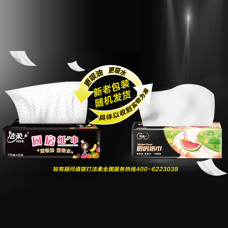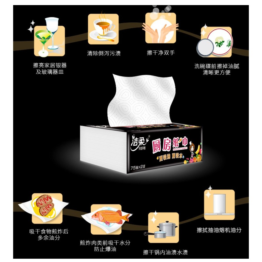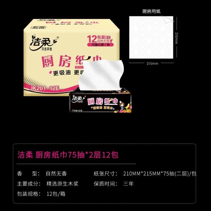 洁柔厨房抽纸75抽专用纸超强油炸吸水吸油擦油纸整箱装厨房纸巾
