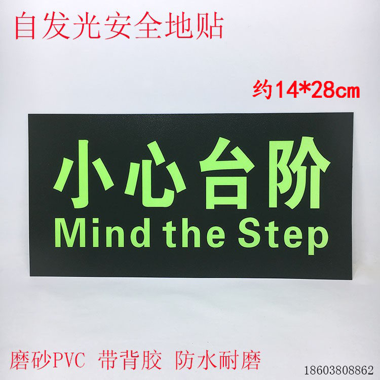 小心台阶地贴楼梯标贴地滑出口荧光夜光消防疏散标识指示牌警示牌