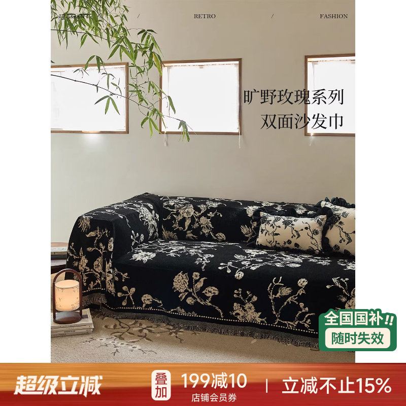 【国补再减15%】蜡笔派旷野玫瑰沙发巾轻奢防滑四季通用2025新款