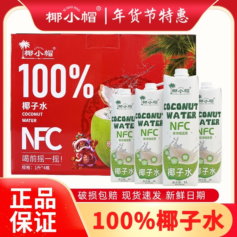【年货礼盒装】泰国原产地椰子水nfc鲜榨100%椰子水1L*4瓶装零添L