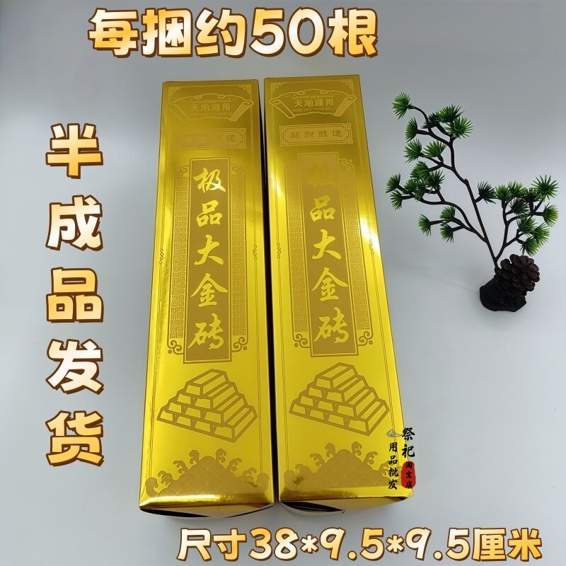 高亮加厚特大金砖纸半成品新款祈福金砖祭祀清明免粘硬卡大金条纸