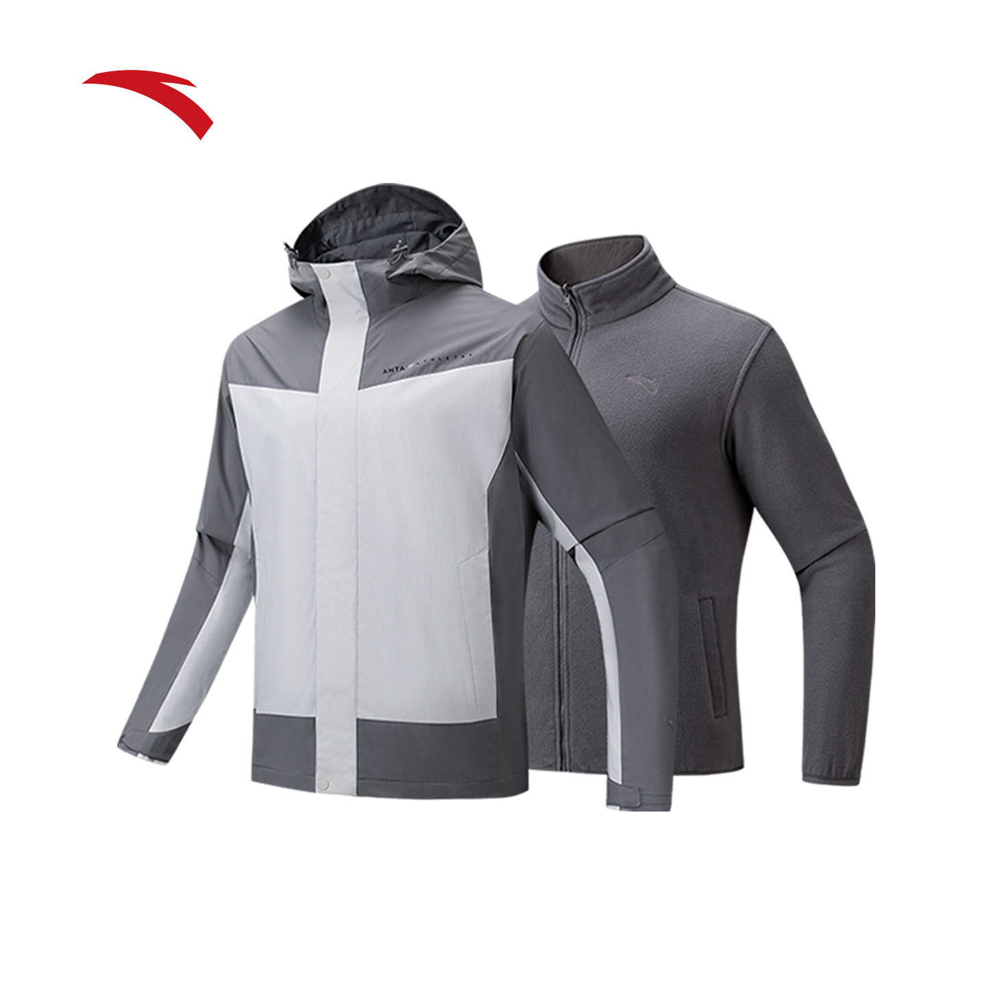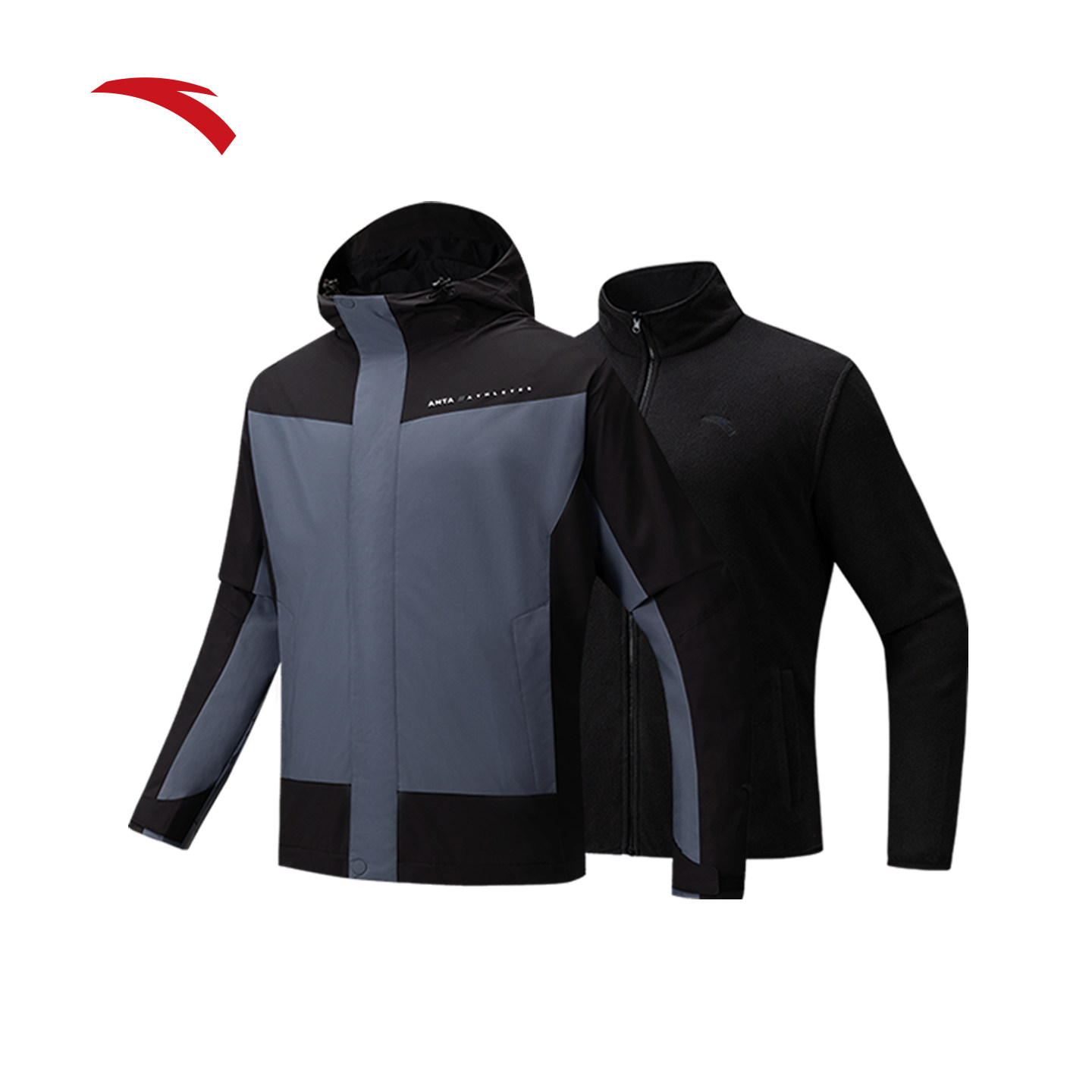 安踏三合一摇粒绒内胆厚外套男冬季新款连帽上衣两件套152547611