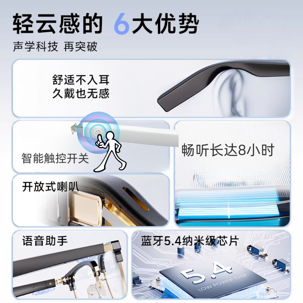 2025新款智能AI翻译镜腿普通眼镜秒变蓝牙眼镜听小说音乐遥控拍照