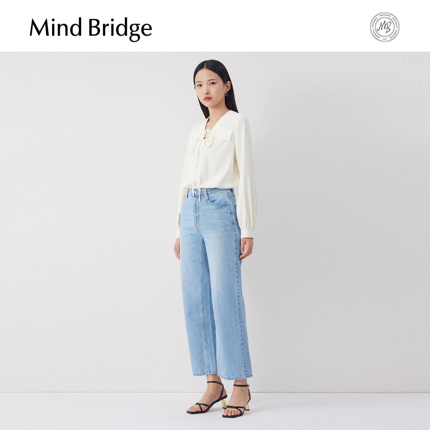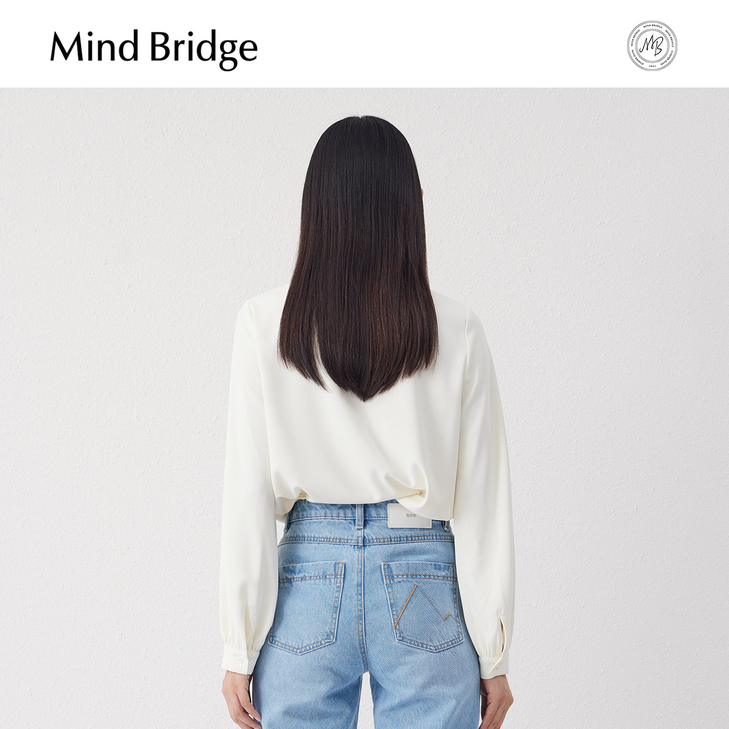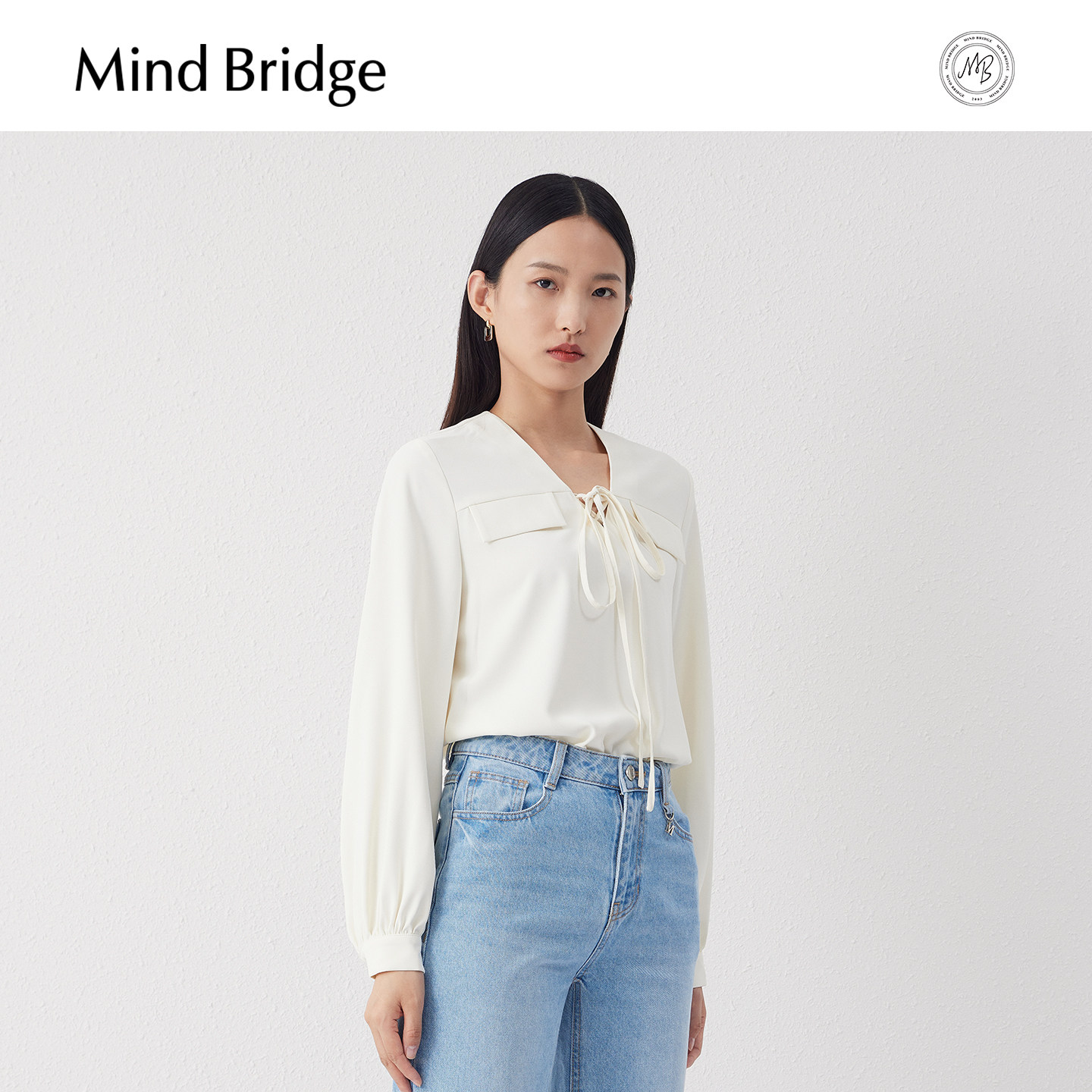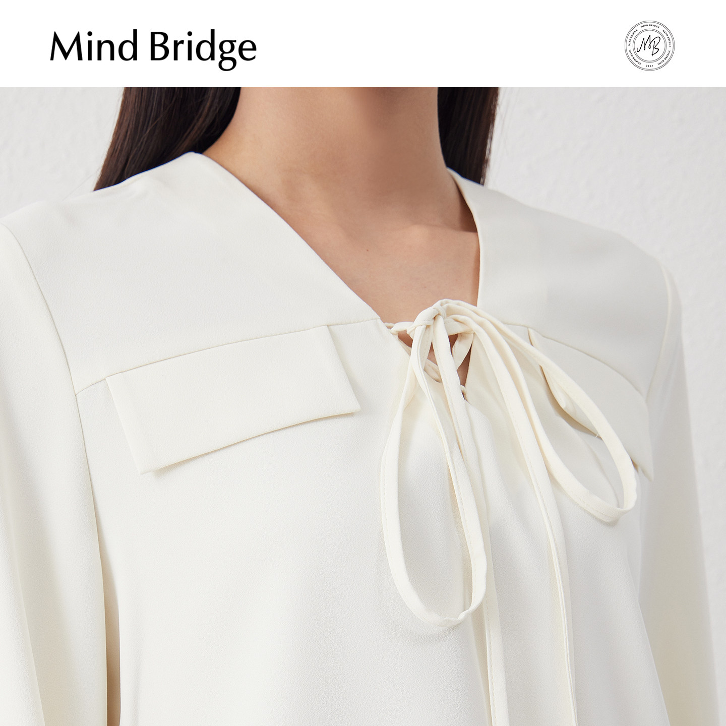 Mind Bridge2025年秋通勤长袖衬衫女士新款设计感小众v领系带衬衣