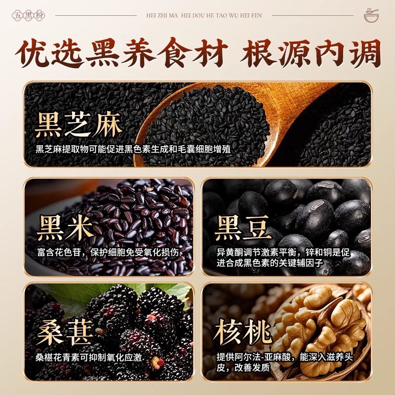 北京同仁堂五黑粉官方旗舰店正品信盛堂养发粉黑芝麻糊代餐粉核桃