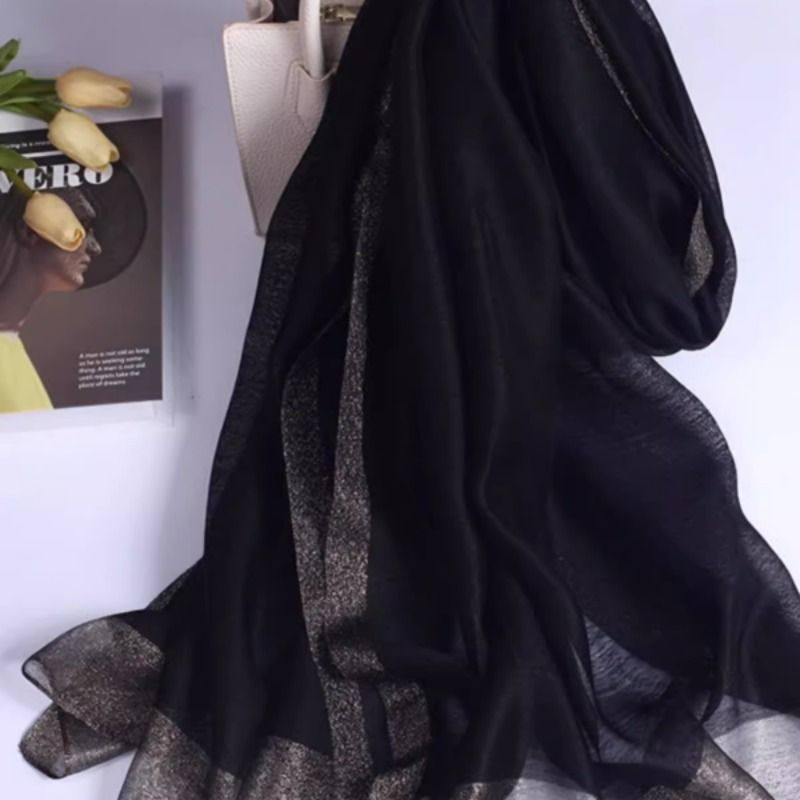 2024新款四季百搭长条小丝巾女薄款洋气高级黑白围脖领巾韩式围巾