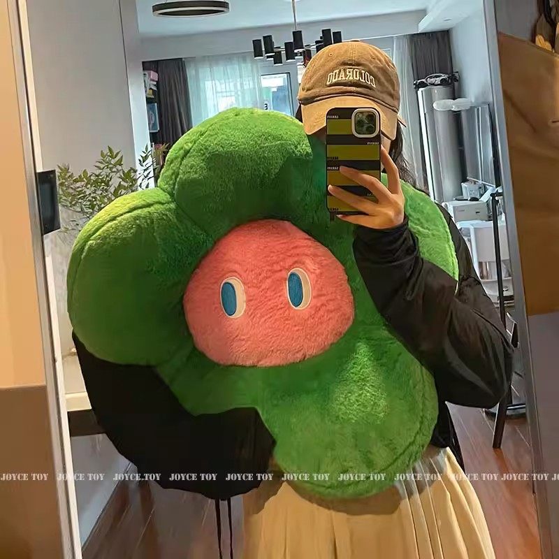ins多巴胺花朵抱枕彩色毛绒可爱超软靠枕车载飘窗坐垫椅垫毛茸茸