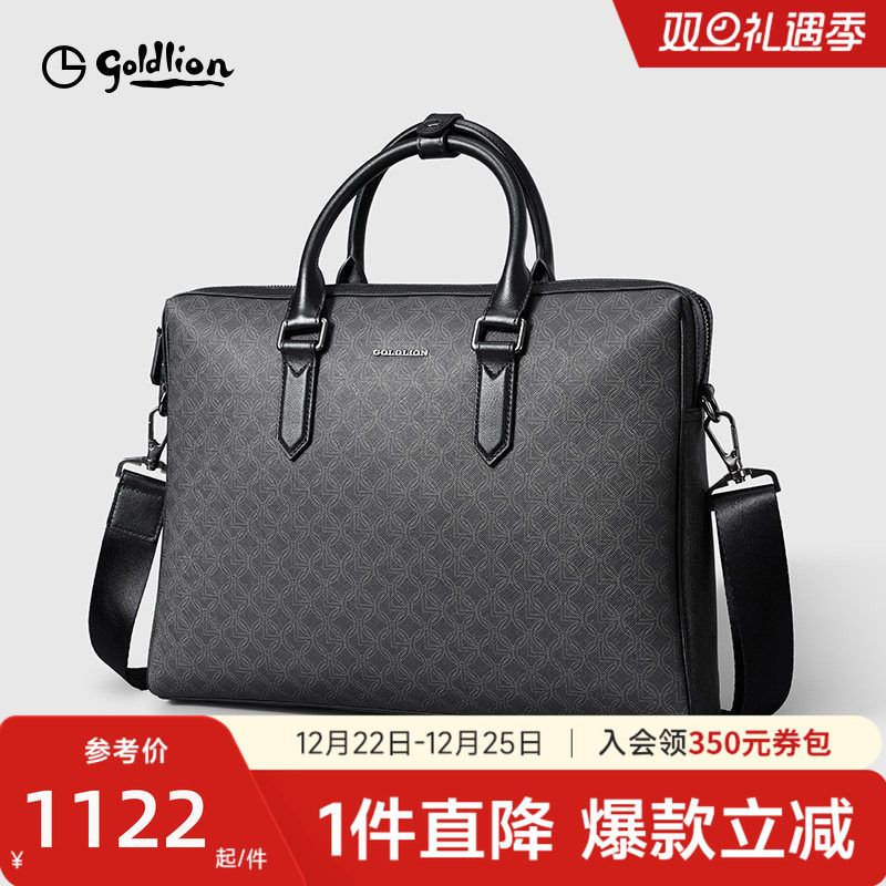 金利来皮具男士新款PVC品牌印花手提包压纹大容量横款男士公文包